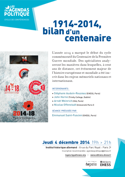 Podiumsdiskussion mit Stéphane Audoin-Rouezau (EHESS), John Horne (Trinity College), Arndt Weinrich (DHIP) und Nicolas Offenstadt (Universität Paris 1). Moderation: Emmanuel Saint-Fuscien (EHESS)