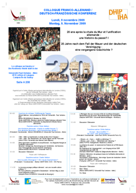 Deutsch-französische Konferenz, organisiert vom Centre d'études germaniques interculturelles de Lorraine (R. Marcowitz) in Zusammenarbeit mit dem DHIP (S. Martens)