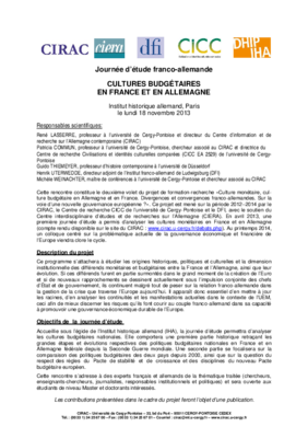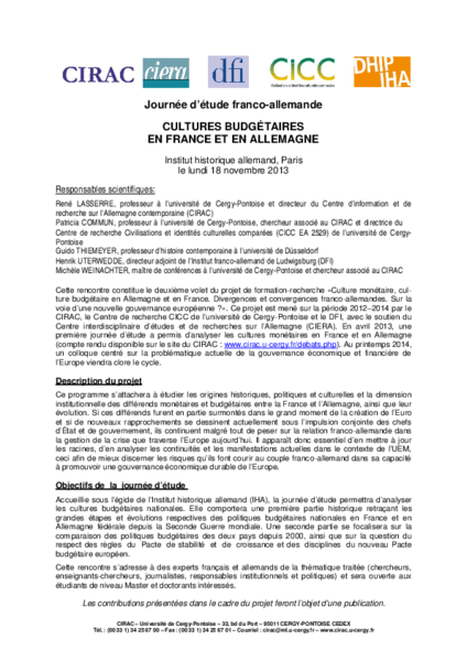 Studientag organisiert von der Universität Cergy-Pontoise in Zusammenarbeit mit dem CIRAC, dem CIERA, dem DFI sowie dem CICC mit Unterstützung des DHIP.