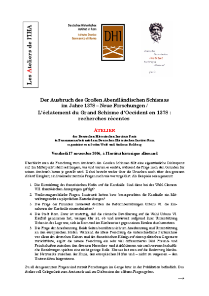 Atelier, veranstaltet vom DHIP (S. Weiß) in Zusammenarbeit mit dem Deutschen Historischen Institut Rom (A. Rehberg)