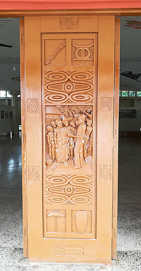 Bildnachweis: Eingangstür zum Regional Museum, Ho, Ghana © Stefanie Michels 2021.
