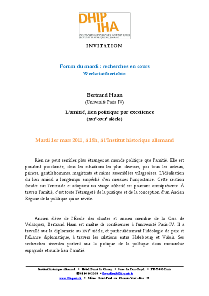 Bertrand Haan (Université Paris-IV), L'amitié, lien politique par excellence (XVI