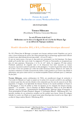 Torsten Hiltmann (Universität Münster), Le roi d’Yvetot était-il roi ? Réflexions sur le titre et la dignité de roi à la fin du Moyen Âge et au début de l’époque moderne