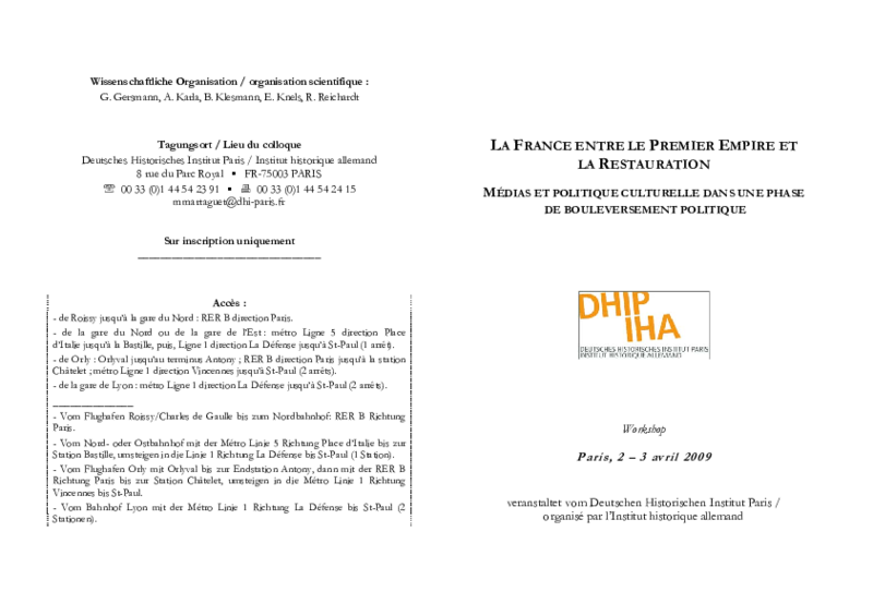 Frankreich zwischen Premier Empire und Restauration. Mediale Verarbeitung und politische Kultur einer Umbruchsphase