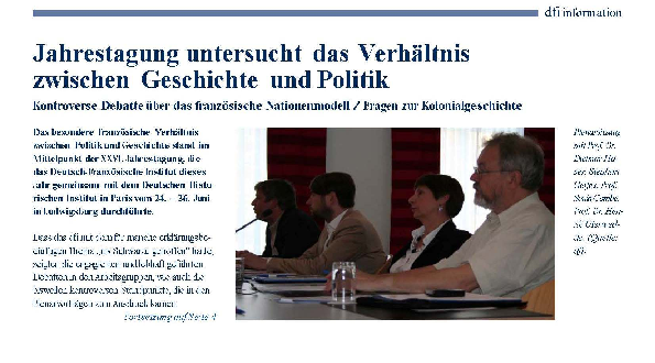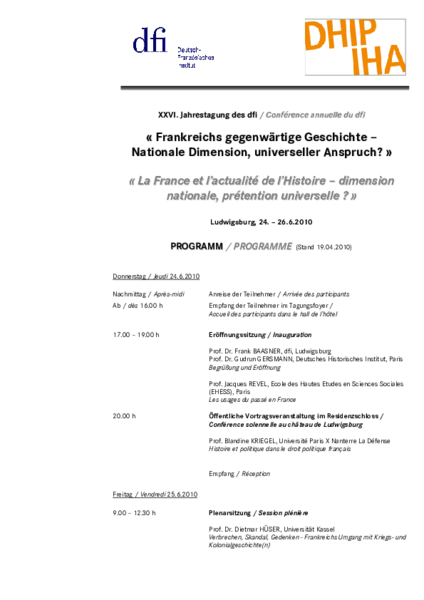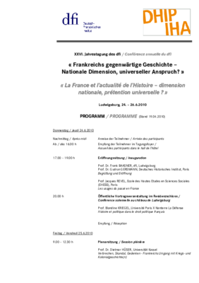 XXVI. Jahrestagung des DFI (F. Baasner) in Zusammenarbeit mit dem DHIP (G. Gersmann)
