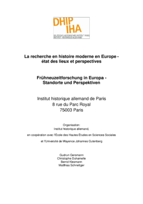 Kolloquium organisiert vom DHIP (B. Klesmann) in Zusammenarbeit mit der Universität Mainz (M. Schnettger) und der EHESS (C. Duhamelle)