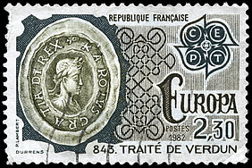 Bildnachweis: Von der französischen Post am 24. April 1982 im Rahmen ihrer Europa-Ausgabe ausgestellte Briefmarke © Can Stock Photo / AlexanderZam