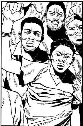 Die Abbildung entstammt dem Comic »Widerstand« der Initiative Perspektivwechsel, das mit dem beiden kamerunischen Zeichnern Franky Mindja und Daniel Assako realisiert wurde.