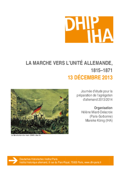 Studientag zur Vorbereitung der Agrégation d’allemand 2014 organisiert vom DHIP (M. König) in Zusammenarbeit mit der Universität Paris-Sorbonne (H. Miard-Delacroix).