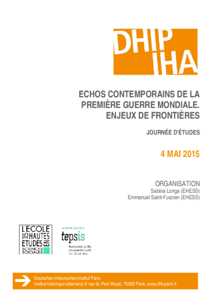 Echos contemporains de la Première Guerre mondiale. Enjeux de frontières