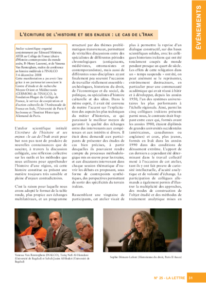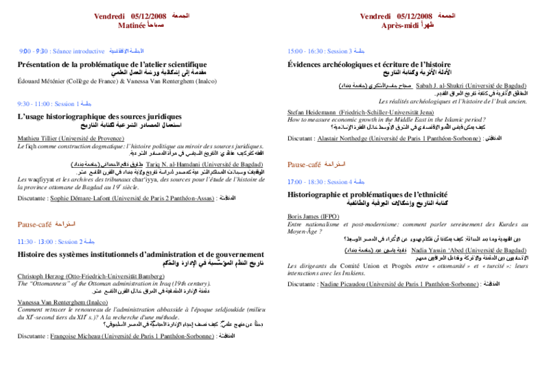 Workshop, veranstaltet vom Institut national des langues et civilisations orientales, dem Collège de France und der Universität Paris I-Panthéon-Sorbonne, in Zusammenarbeit mit dem DHIP (G. Gersmann, D. König)