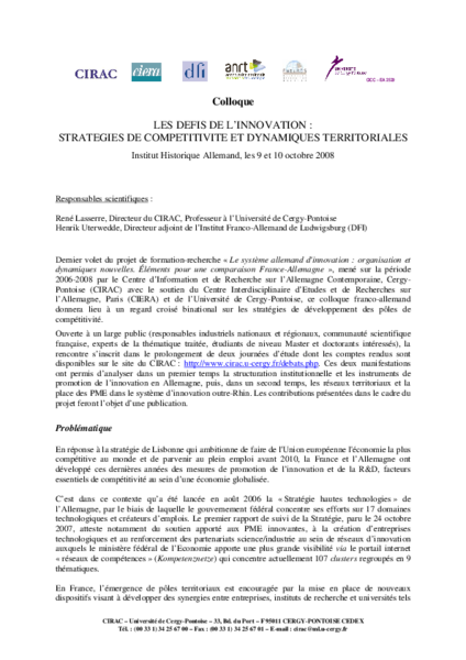 Les défis de l'innovation: stratégies de compétitivité et dynamiques territoriales