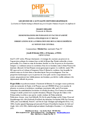 Hagen Keller (Universität Münster), Démonstrations de puissance et pactes d’amitié dans la politique du Xe siècle. Observations sur la formation des royaumes européens au Moyen Âge central