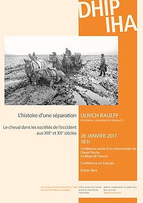 Vortrag von Ulrich Raulff (Deutsches Literaturarchiv Marbach), L’histoire d’une séparation. Le cheval dans les sociétés de l’Occident aux XIXe et XXe siècles
