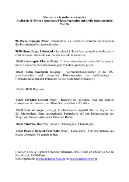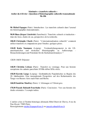 Atelier, veranstaltet von der École normale supérieure (M. Espagne)