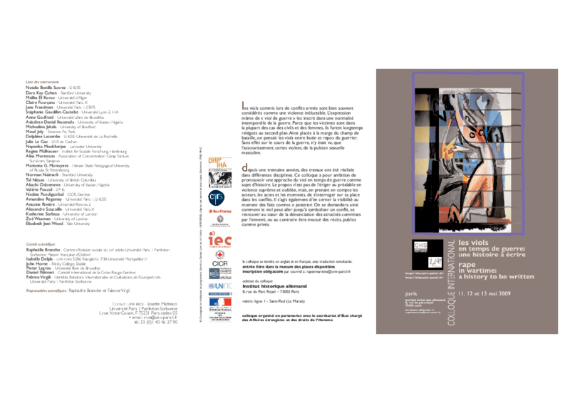 Kolloquium des Centre d'histoire sociale du XXe siecle (CHS), der UMR Identités, relations internationales et civilisations de l'Europe (IRICE), der UMR 8058 und 8138 (CNRS / Université de Paris I-Panthéon-Sorbonne) und dem DHIP (S. Martens), mit Unterstützung des CICR, der BDIC und des Musée de l'armée