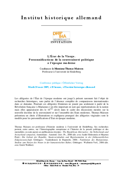 L'État de la Vierge. Personnifications de la souveraineté politique à l'époque moderne