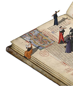 Bildnachweis: Quo vadis 2023, London, BL, Yates Thompson MS 17, fol. 4v, 26r., Paris, BNF und Français 1537, fol. 29v, 40r, 71r, 80r. Leipzig, UB, Ms 38 Einband, Collage von Maria Kammerlander und Sebastian Gensicke, CC-BY 4.0.