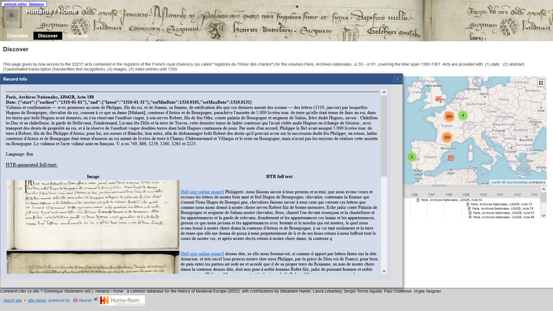 Bildnachweis: Screenshot der Webseite des Forschungsprojekts Himanis am IRHT.