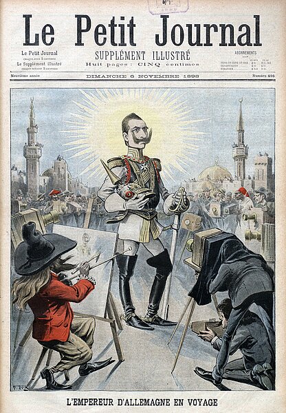 Bildnachweis: Henri Meyer, „L’empereur d’Allemagne en voyage“, in: Le petit Journal. Supplément illustré, 6.11.1898, Anlässlich der Reise Wilhelms des Zweiten nach Konstantinopel und Jerusalem. Quelle: Wikimedia Commons. Public Domain.