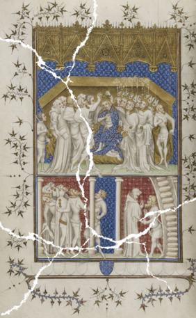 Bildnachweis: Grandes Chroniques de France, BnF Département des manuscrits, ms. fr. 2813, fol. 3v, Gallica.