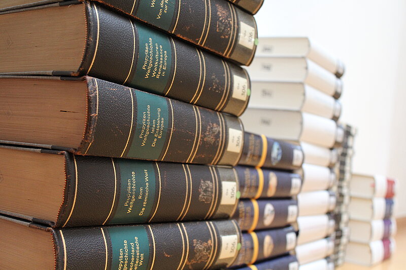 Bildnachweis: Verschiedene Weltgeschichtseditionen - Bücherstapel © Margot Lyautey