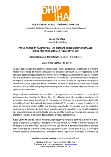 Organisiert vom DHIP in Zusammenarbeit mit der Chaire d’histoire culturelle du Moyen Âge à l’université Paris-Sorbonne.