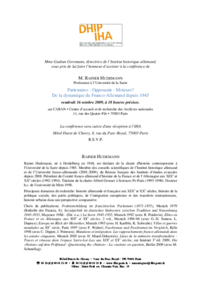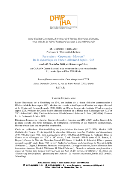 Partenaires - Opposants - Moteurs? De la dynamique du Franco-Allemand depuis 1945
