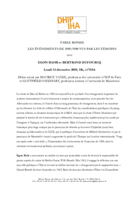 Mit Egon Bahr und Betrand Dufourcq, moderiert von Maurice Vaïsse und Gottfried Niedhart Veranstaltung mit Simultanübersetzung in Deutsch und Französisch