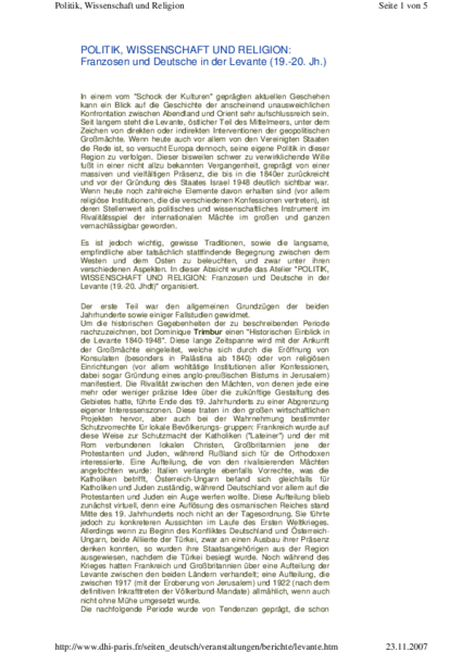 Politique, science et religion. Français et Allemands au Levant (XIXe–XXe siècle)