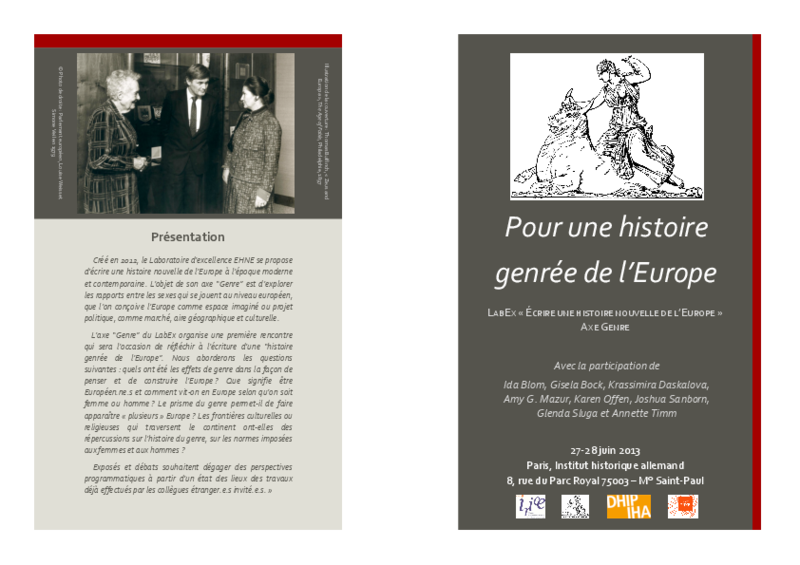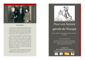 Kolloquium organisiert vom Exzellenzcluster »Écrire une histoire nouvelle de lʼEurope. Axe genre« in Zusammenarbeit mit dem IRICE und dem DHIP.