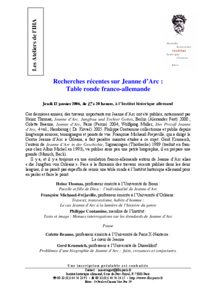 Recherches récentes sur Jeanne d’Arc