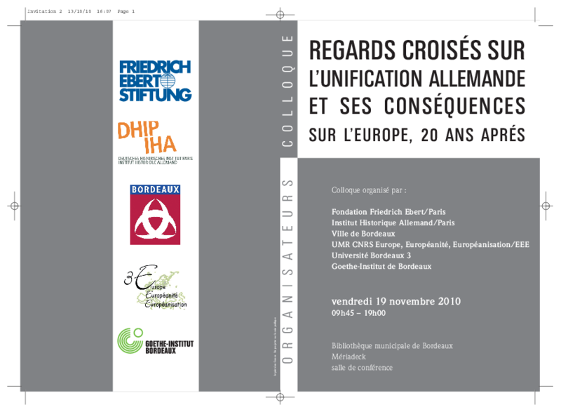 Kolloquium organisiert vom CNRS EEE (Europe, Européanité, Européanisation), der Universität Bordeaux und der Stadt Bordeaux in Kooperation mit dem Goethe Institut Bordeaux, der Friedrich Ebert Stiftung und dem DHIP