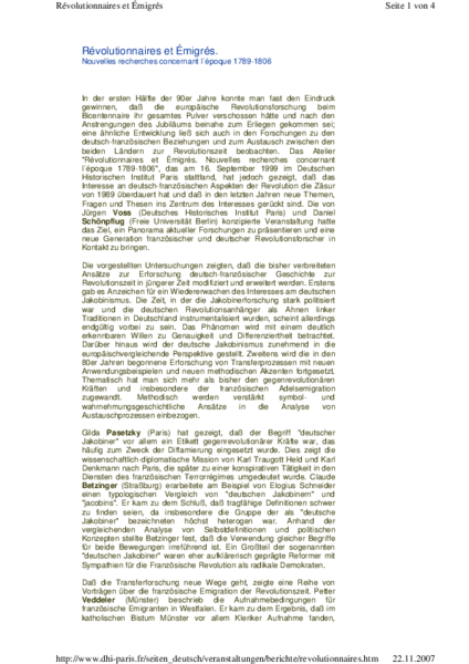 Révolutionnaires et émigrés. Nouvelles recherches concernant l’époque 1789–1806