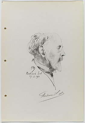Ferdinand Lot (1866–1952). Photographie d’un dessin original issu du recueil de Paul Helbronner, Seconde série de cent cinquante profils de confrères, Paris 1931 (Paris, Bibliothèque de l’Institut, © RMN / Gérard Blot).