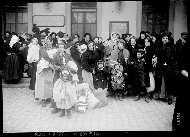 Bildnachweis: Junge Geflüchtete, zurückgekehrt nach Evian [vor dem Bahnhof], 1917, © Agence Rol, Quelle: Gallica, Bibliothèque nationale de France.