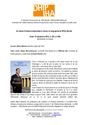 Buchvorstellung anlässlich der Publikation von Hélène Miard-Delacroix, Willy Brandt, Paris (Fayard) 2013.