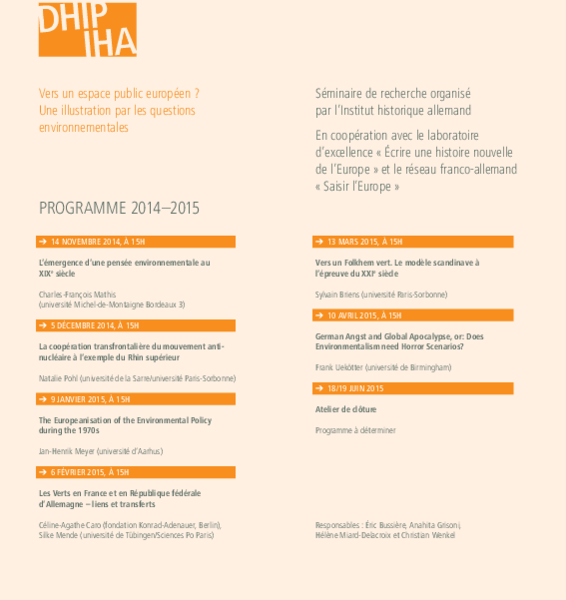 Forschungsseminar organisiert vom DHIP (C. Wenkel) in Zusammenarbeit mit dem Exzellenzcluster »Écrire une histoire nouvelle de l’Europe« (E. Bussière, H. Miard-Delacroix) und dem deutsch-französischen Netzwerk »Saisir l’Europe« (A. Grisoni).