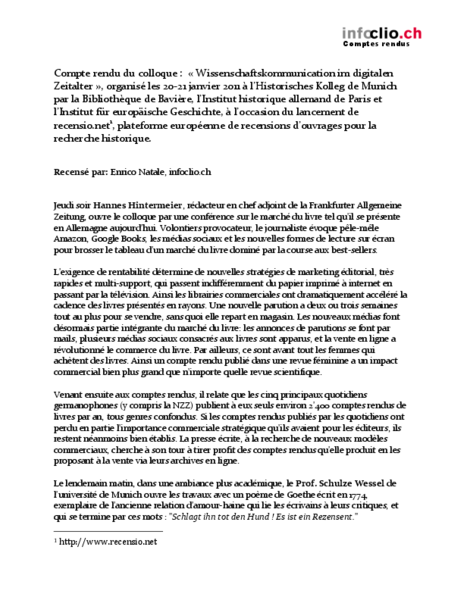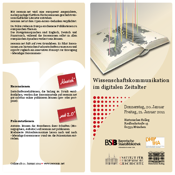 Internationale Tagung zum Onlinegang der Rezensionsplattform für die europäische Geschichtswissenschaft recensio.net.