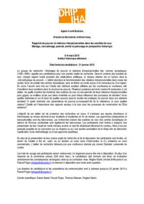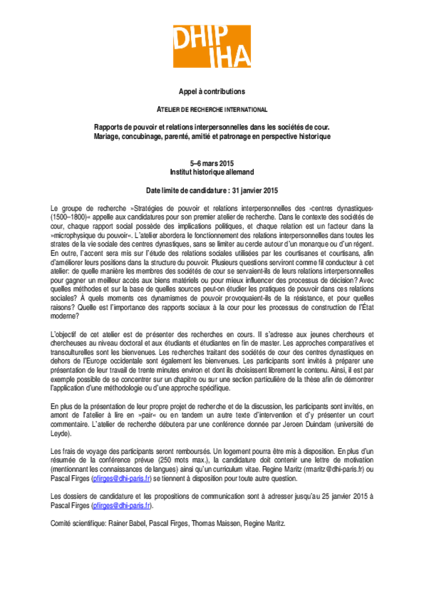 Journée d’étude organisée par le groupe de recherche »Stratégies de pouvoir et relations interpersonnelles des centres dynastiques (1500–1800)« (P. Firges, R. Maritz) à l’IHA.